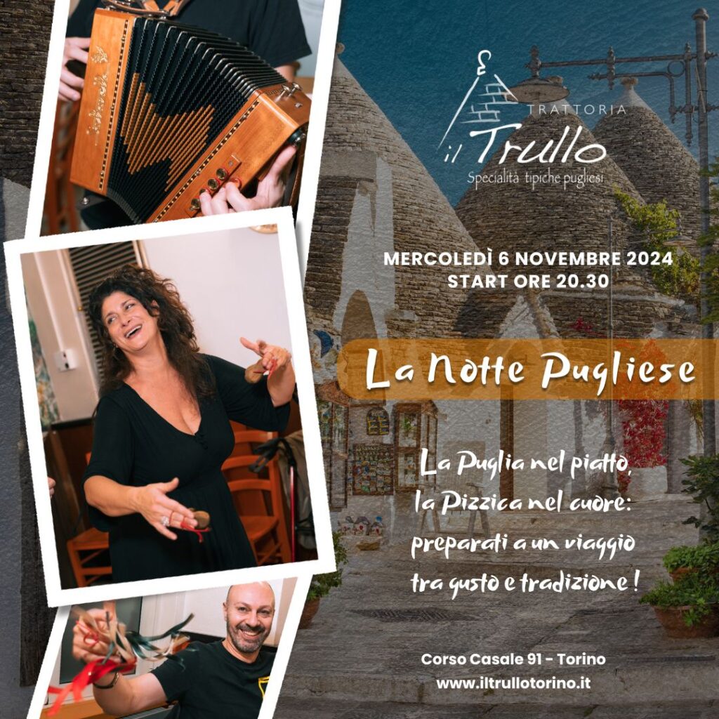 Mercoledì 6 Novembre 2024 – Pizzica salentina suonata e ballata dal vivo al Trullo